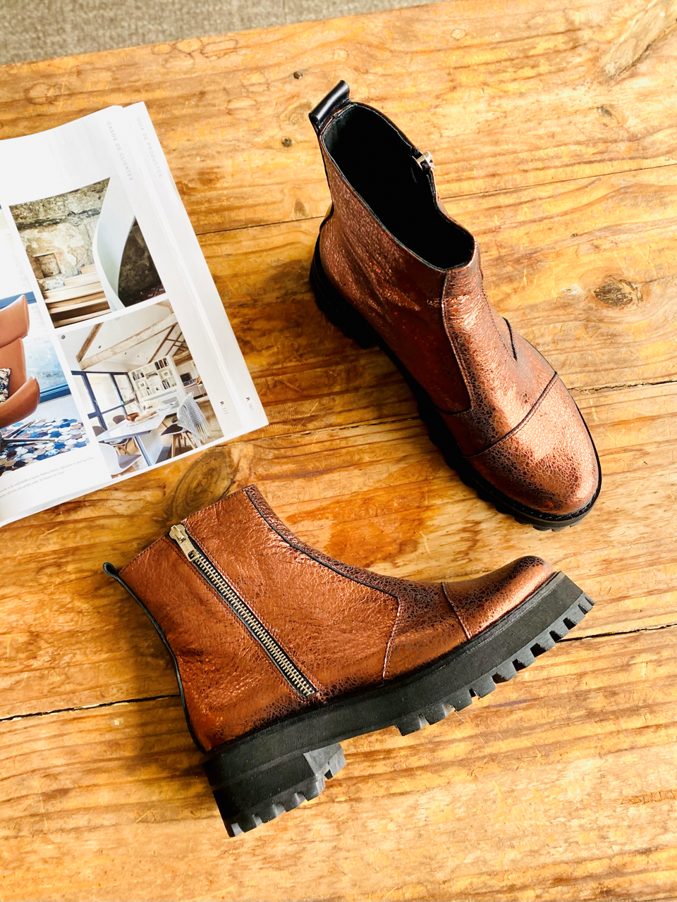 Bota de cuero con cierre