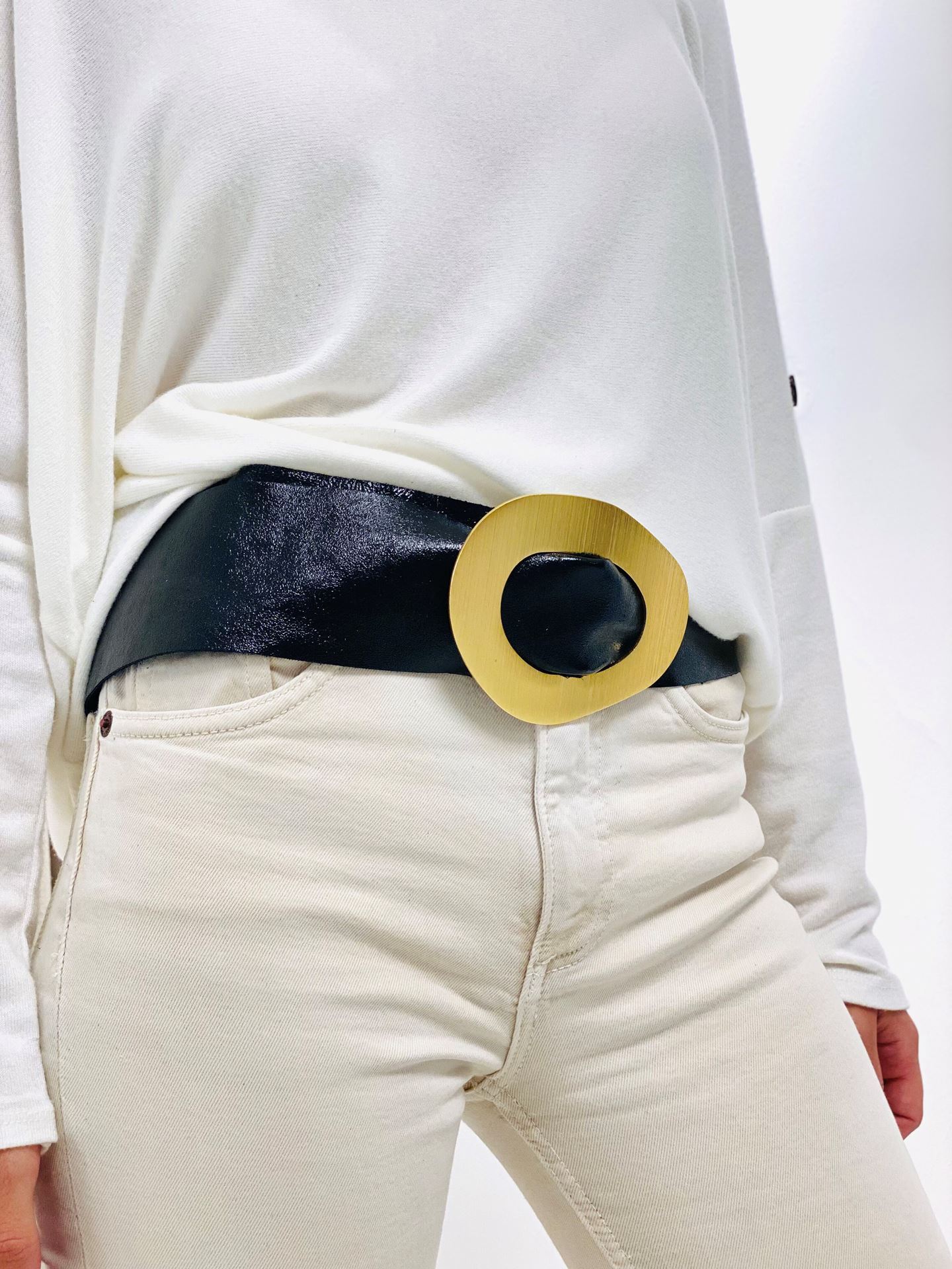 Cinto de Cuero Negro Croco Hebilla Rectangular