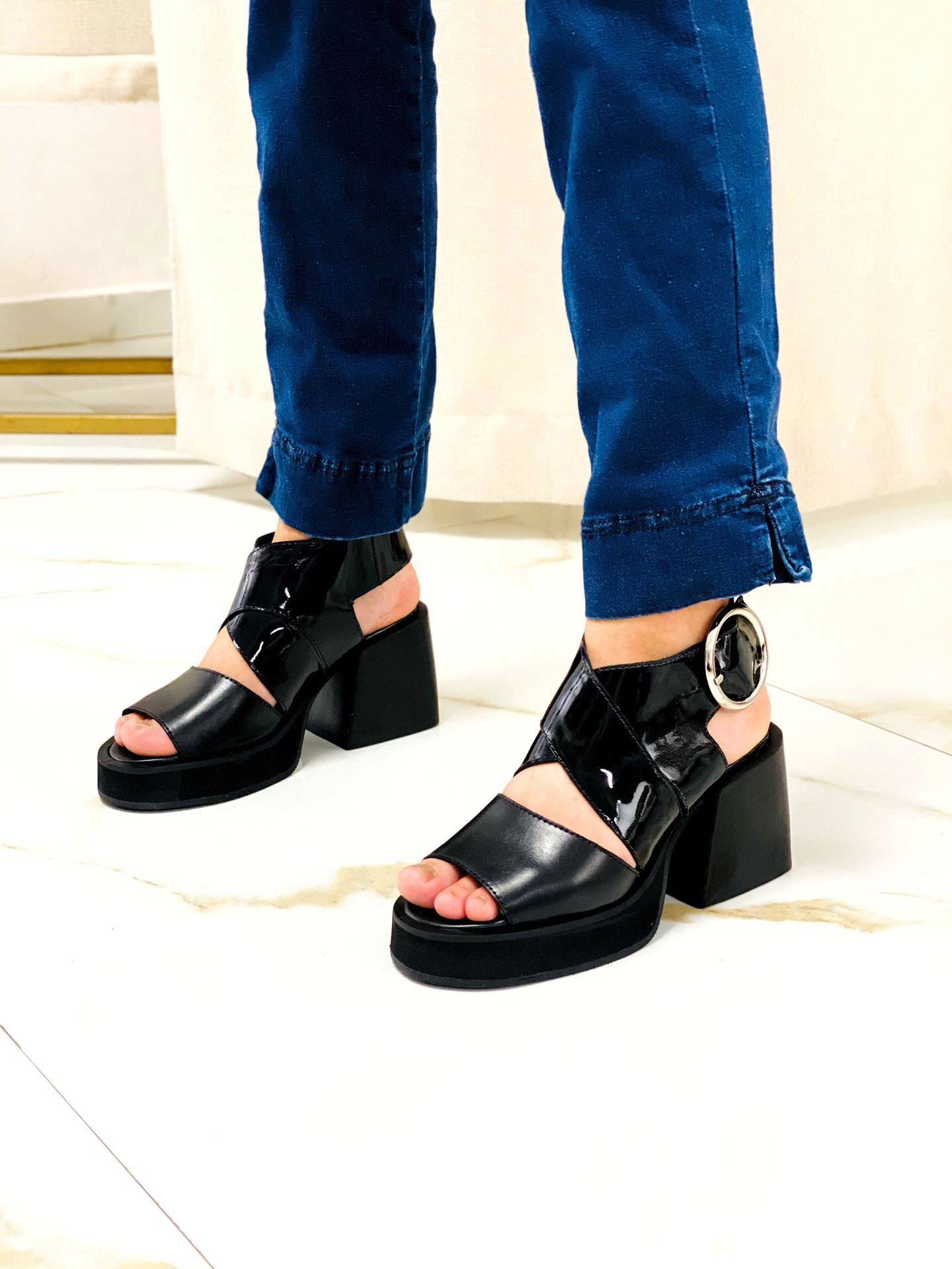 Sandalia Aniston Negro Milano Charol