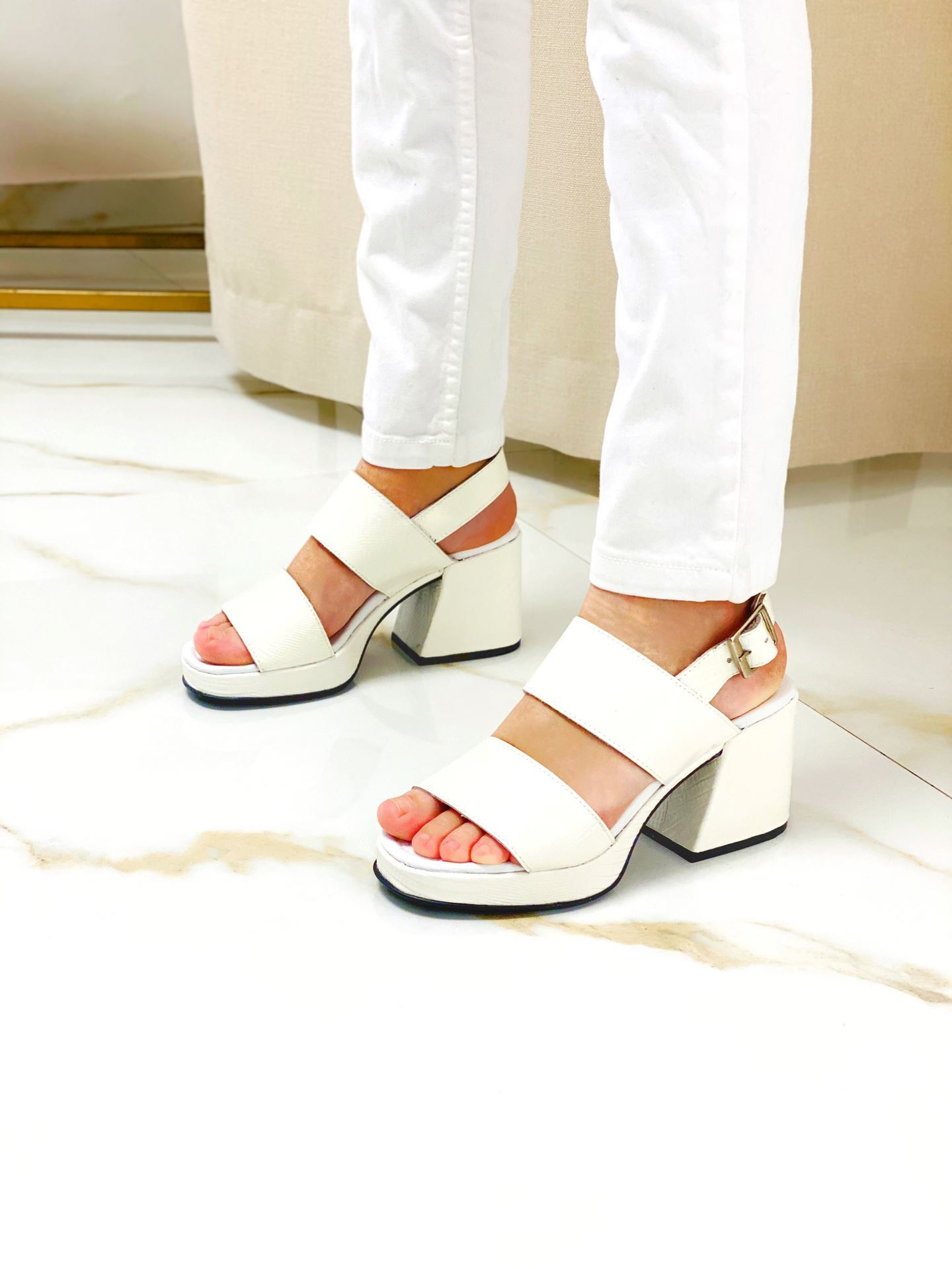 Sandalia Toronto Blanco Lagarto Charol