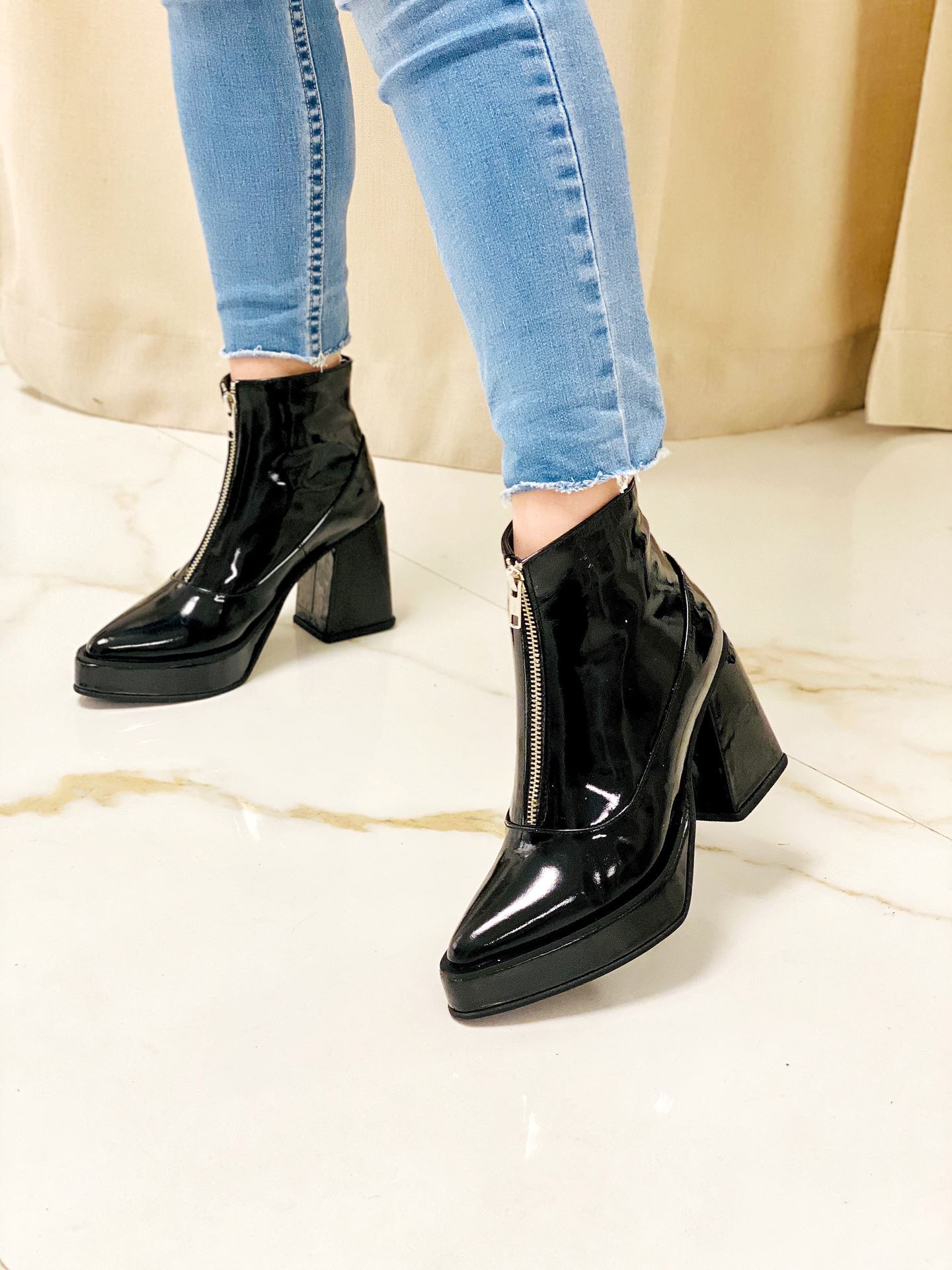 Bota de cuero con cierre adelante.